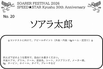 ・当日飛び込み参加はできません。必ず参加表明ください。 入場時に参加費・宿泊費・後夜祭代・弁当代を現金で支払っていただきます。 (宿泊費・後夜祭代・弁当代は申込者のみ) ・駐車場はお金を払って貸し切りにさせてもらっていますので 参加表明者、関係者以外立ち入り禁止のクローズドなオフ会です。 ・参加費は、1台3,000円(内駐車場代1,000円) ・ホテル宿泊費、後夜祭代、弁当代 1名シングル:1室 16,000円、2名ツイン:1室 22,000円 後夜祭代:1人7,000円 弁当代:1個1,000円 ・弁当を頼んでいない方は、道中のコンビニで買ってくるか、 (近くにコンビニ、スーパーはありません) ホテルの売店、レストランなどをご利用ください。 ・9時前に到着された方は、ホテルセキア側の駐車場に待機ください。 ![]() ・会場の駐車場から近めのホテル内に自販機あり ![]() (アイス、飲み物、アルコールあり) ・テント設営、椅子、テーブルなどOK。個人フリーマーケットOK。 日差しや雨などからの退避として駐車場下の建物の軒下、 ![]() 木陰に入っていただいても構いません(許可もらっています) ![]() ・閉会式後、宿泊者は、駐車場にそのまま停めておけます。 ホテル側の駐車場に移動してもOK。 ・参加者による投票でコンテストを行う予定です。 - 外装部門 - 内装部門 - Egルーム部門 - 足回り部門 各部門、ダッシュボード用紙のNoを記載して投票してもらいます ![]() ![]() |